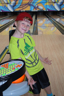 Our little red haired guy turned six but that doesn't seem possible because he just learned to walk yesterday, right? He certainly keeps us on our toes and keeps us entertained. Since I had drop off duty for his birthday, we stopped on the way to school for birthday donuts. We also bought donuts to take in and share with the class. For his party this year, we went down the street to Professor Bowl. All the kids had so much fun. They each bowled one game, which was the perfect amount for that age group, then they got to have a hot dog or pizza followed by cake. I did have to laugh when I looked a the party a few lanes down that consisted of all girls and was so nice, quiet and civilized. Meanwhile, we had boys tackling each other and running around. I thoroughly enjoyed not having to clean up afterwards.